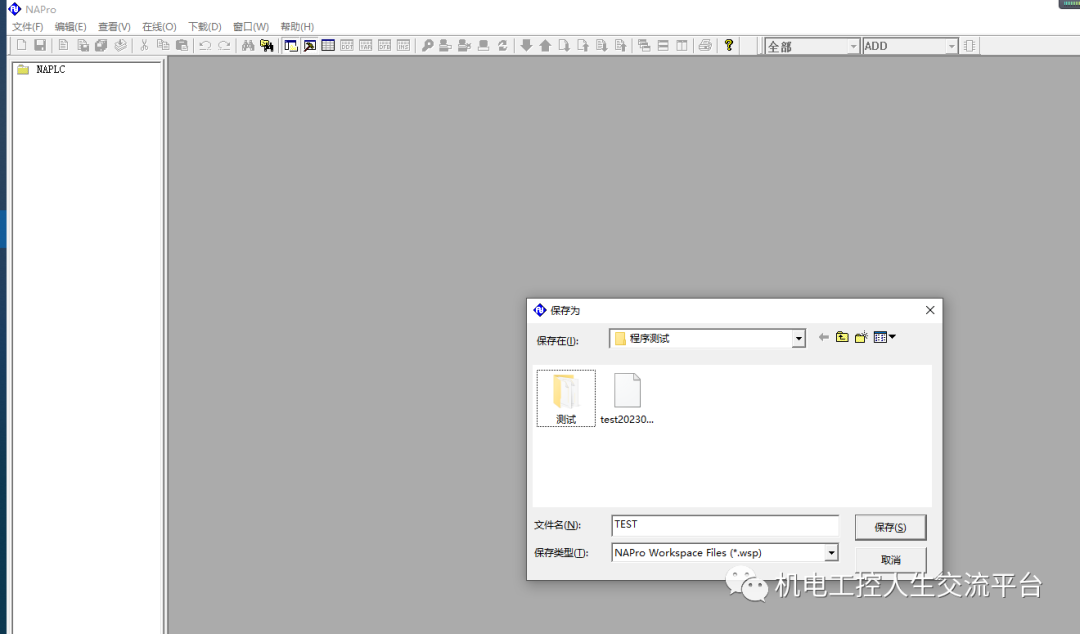新建程序文件TEST