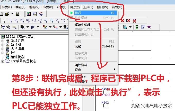 第8步:联机完成后,在确保安全的前提下,点击执行按钮,完成最后的下载程序过程,这时PLC已能独立工作: