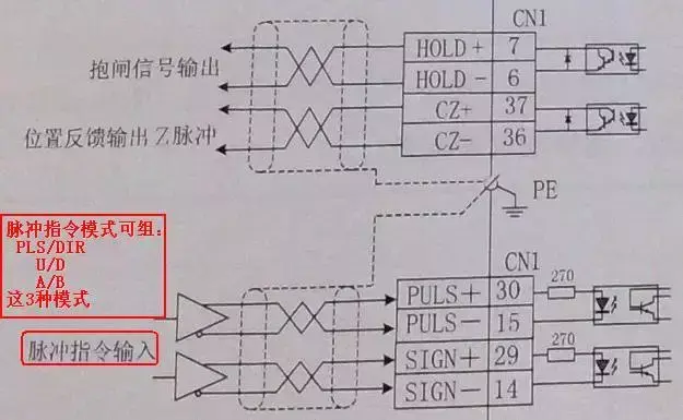 编码器分频输出电路:当需要将伺服编码器信号连接到PLC进行闭环控制时,不可能直接从电机上分线,所以驱动器提供了编码器分频输出。