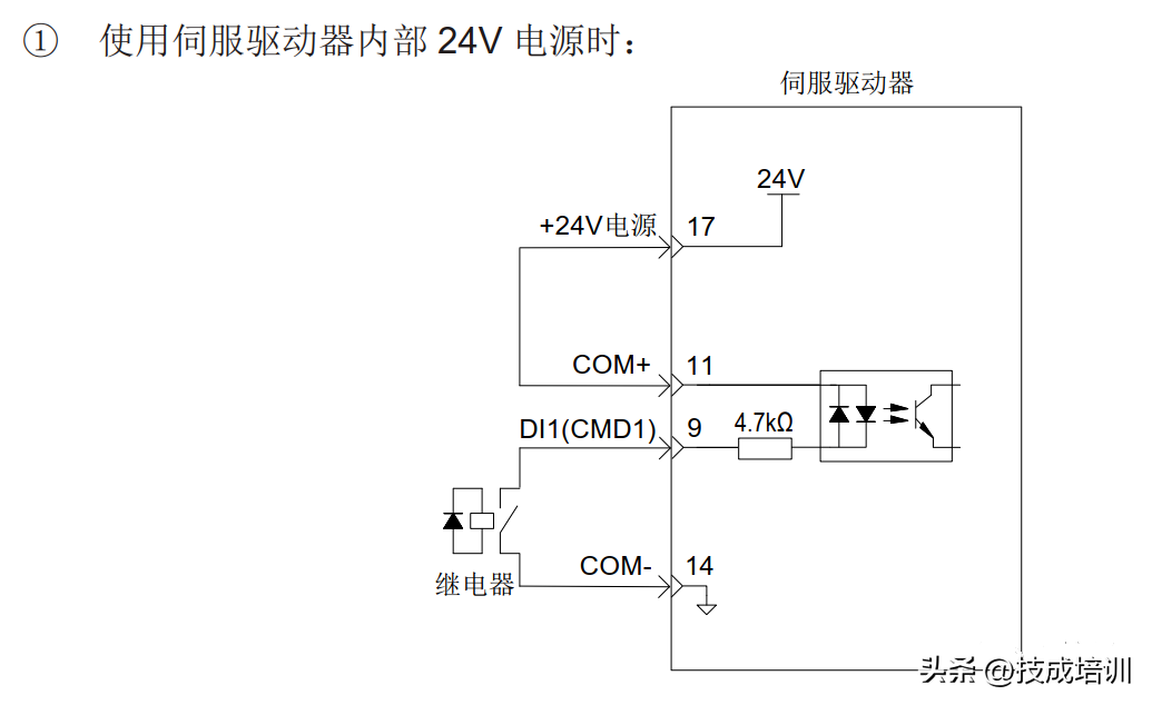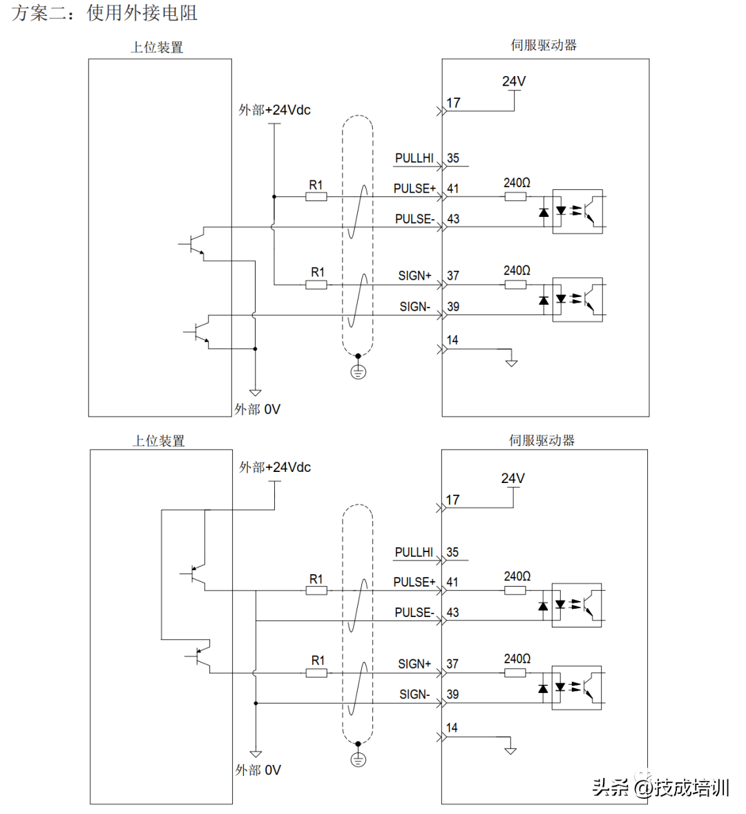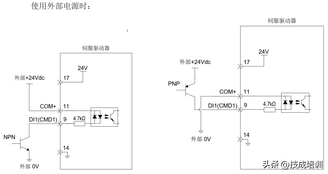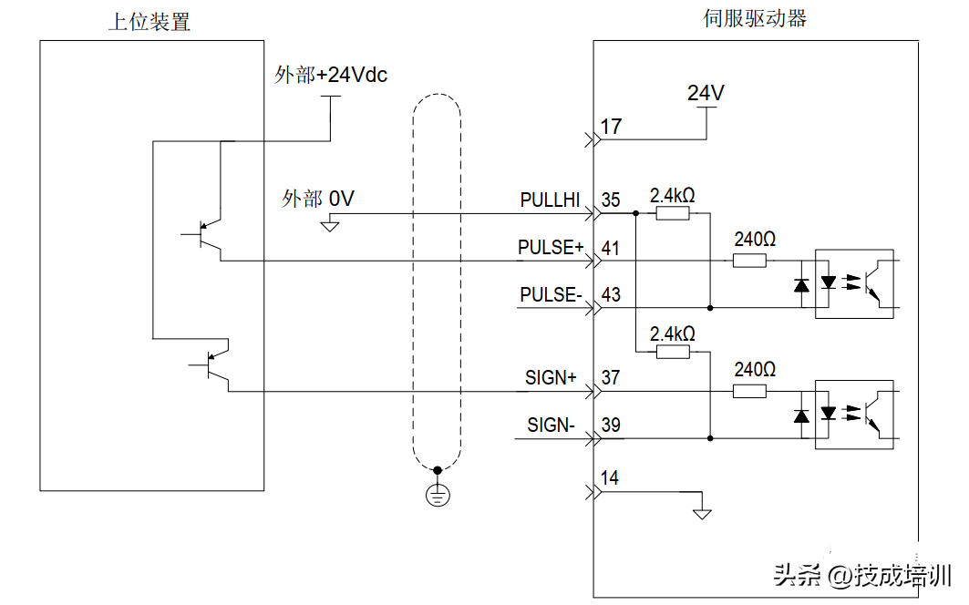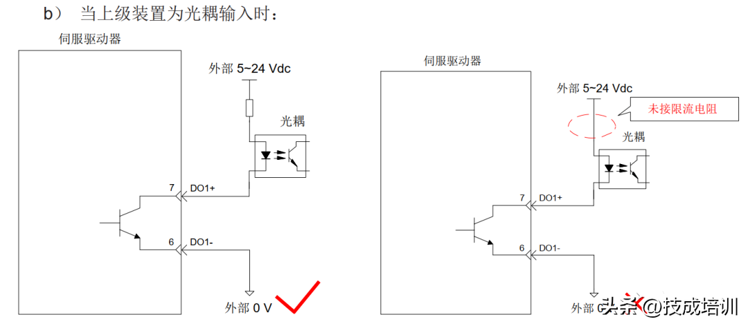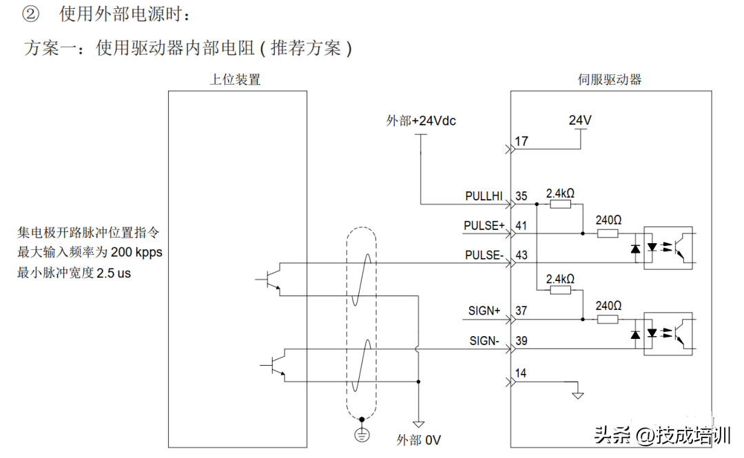 伺服驱动单端驱动方式限定外部电源最大电压为25V 时,需要串接一个限流电阻R