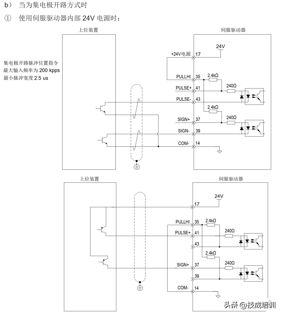 低速脉冲指令输入与不同输出类型的上位机装载连接方式不同,如