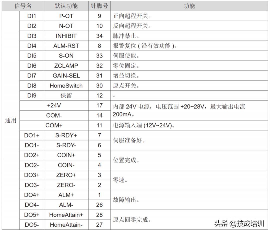 SON:为ON 时,开启伺服使能。当然伺服使能功能可以通过参数来修改,该信号可由参数PA54 设置。