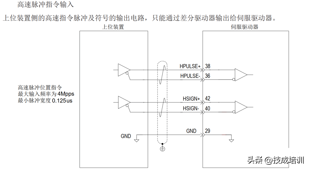 伺服驱动器位置控制支持两种脉冲指令输入,一是低速脉冲位置指令输入方式,二是高速脉冲位置指令输入。如下表所示: