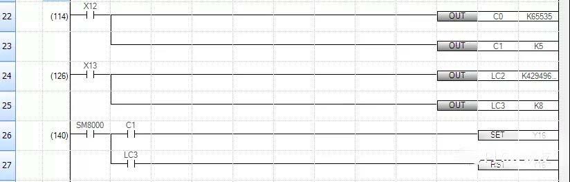 使用的时候需要注意,计数器C的设定值的设置范围为1~65535。超长计数器LC的设定值的设置范围是0~4294967295,因为LC是属于32位的软元件。