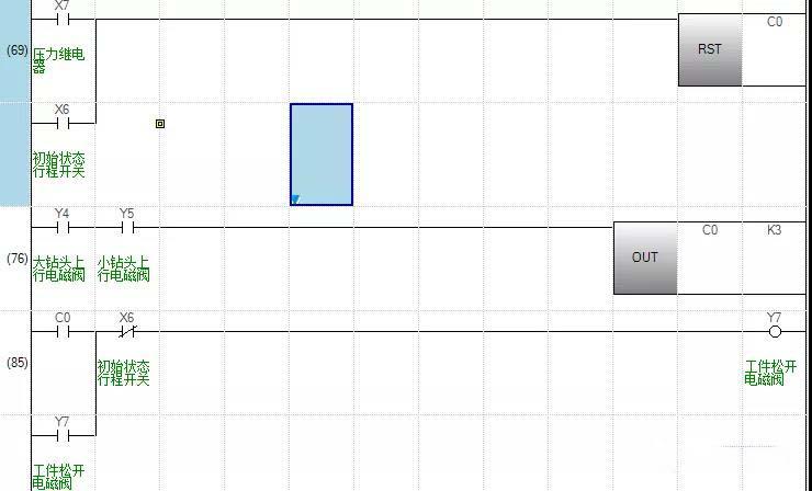 可以按下述步骤输入1、假设x1为检测信号,在软件中用X1对C0计数,在左母线处可以直接输入“LDX1”2、以C0作为内部计数器,我们假设X1检测3次之后C0动作,这时...