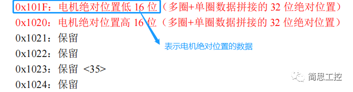电机的多圈位置,是32位地址,对应到PLC的数据必须要用到双字节,PLC内部关于位置的双字节寄存器就是W32位寄存器,也就是用到W寄存器显示电机的绝对位置。