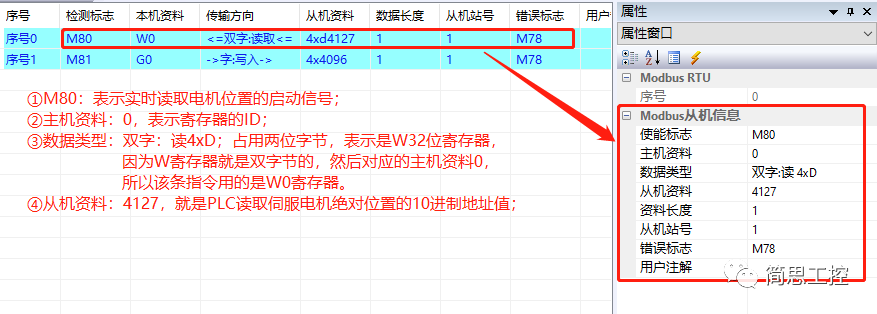 ④从机资料:4127,就是PLC读取的伺服电机位置的10进制地址值;