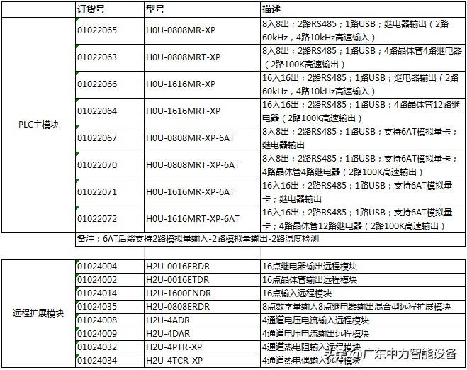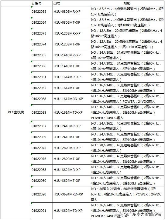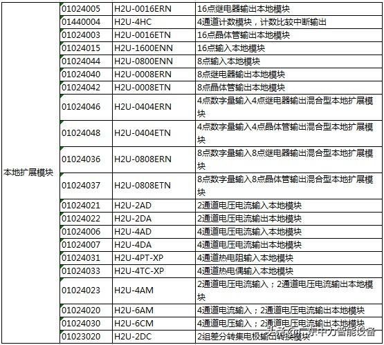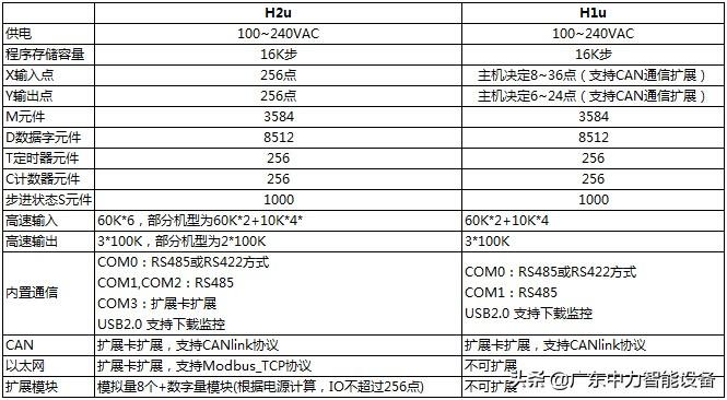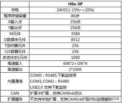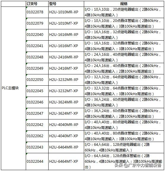 H2U系列通用型小型PLC产品参数及型号