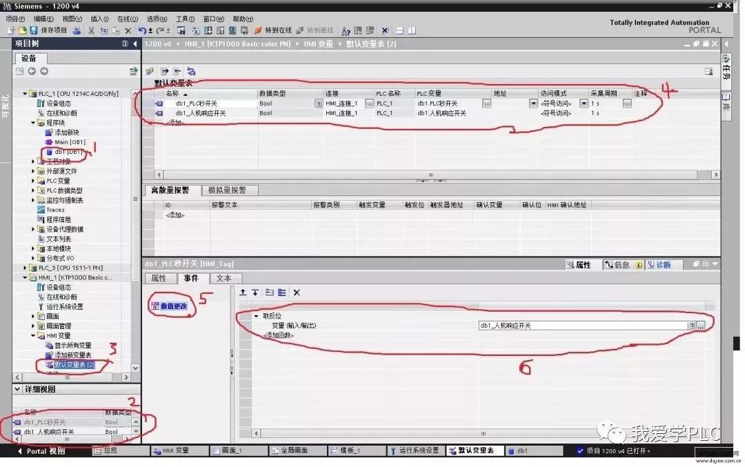 1、在PLC里建立DB1数据块,里面设两个开关量“PLC秒开关”和“人机响应开关”;