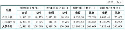 2016年至2019年6月30日,四会富仕负债总额分别为7826.44万元、1.22亿元、9395.06万元、1.06亿元。