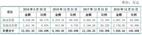 2016年至2019年6月30日,四会富仕负债总额分别为7826.44万元、1.22亿元、9395.06万元、1.06亿元,资产负债率(合并)分别为38.80%、40.32%、26.02%、26.09%。