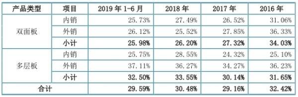 2016年至2019年1-6月,四会富仕毛利率分别为32.42%、29.16%、30.48%及29.59%。