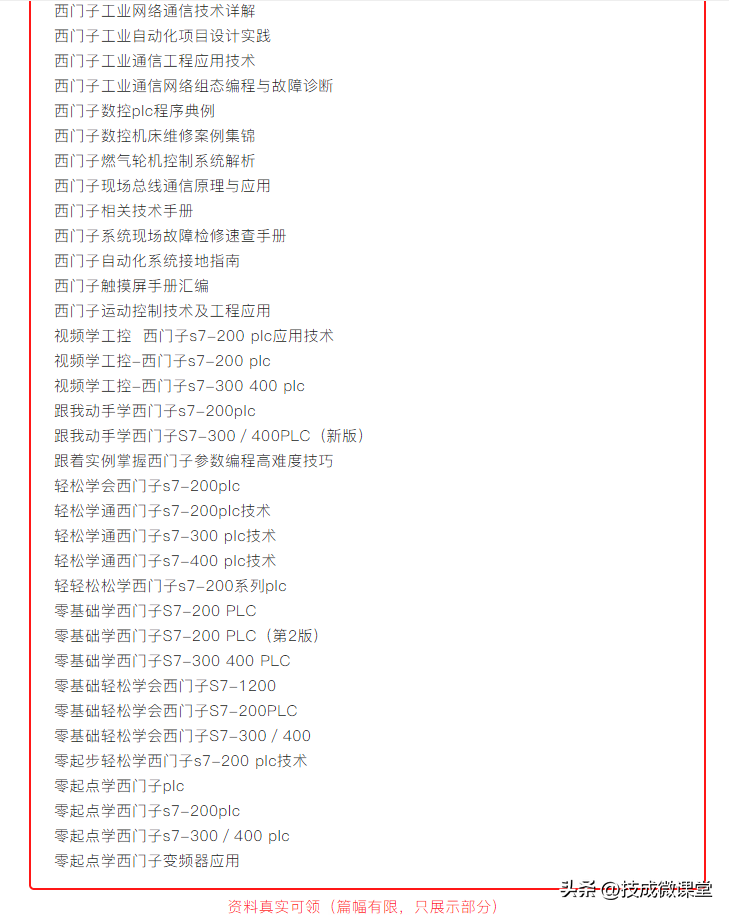 没别的,小编为你准备了,西门子PLC电子书共计64本。这份资料,可以说是市面上整理最齐全的了。并且可以根据自己的技能水平,选择性的学习,一步步提高。