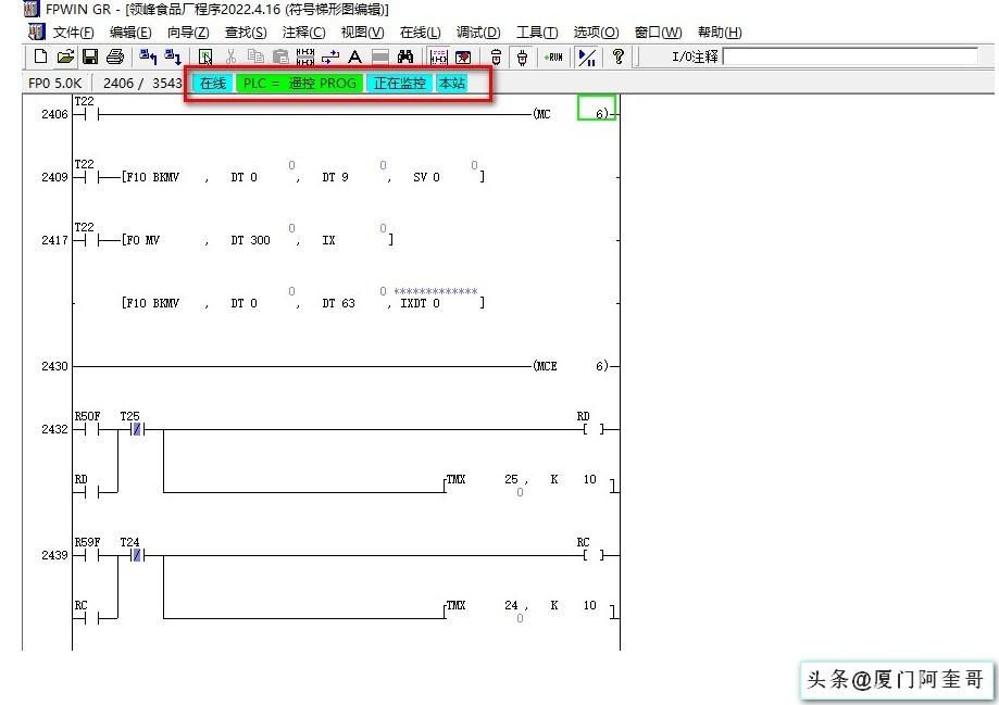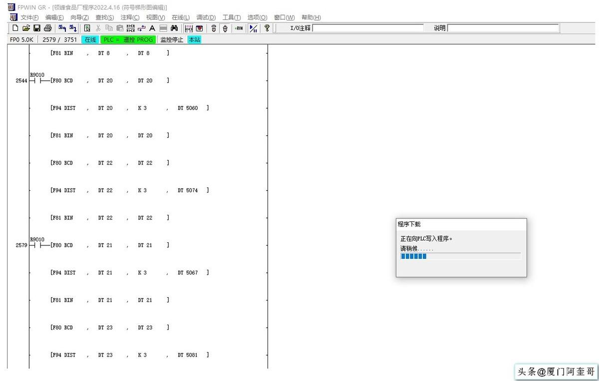 11、至此我们完成了松下PLC的通信连接、程序的上传和下载操作。
