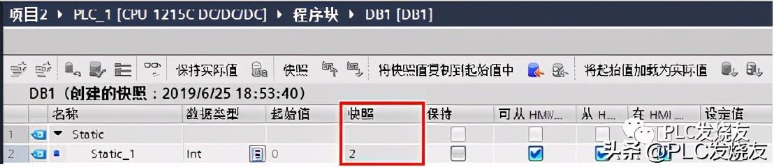 4、值得注意的是上传的DB块包含起始值与快照值,快照值也就是上传时DB块变量的实际值,可以用来将其加载为实际值或初始值。