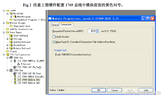 如果出现下图中所示的黄色问号图标,表示主机中没有此模块 EDS 文件,