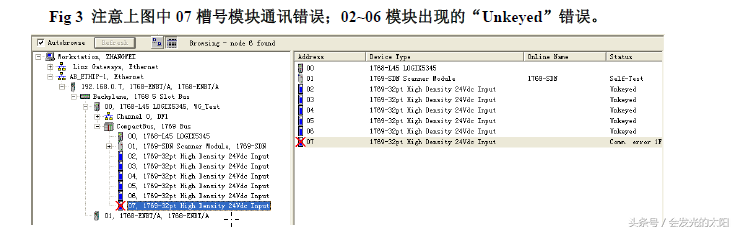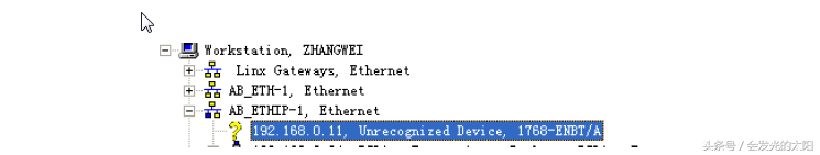 在 RSLogix5000 硬件配置中组态网络的配置,此时可以参照 RSLinx 中显示