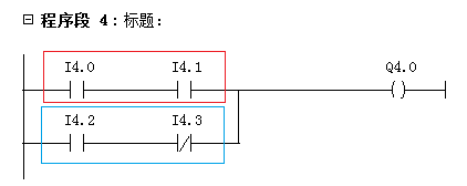 图5的混联逻辑,由两个串联组件(红框和蓝框)再经由并联后,将逻辑结果赋值给Q4.0。我们可以令: