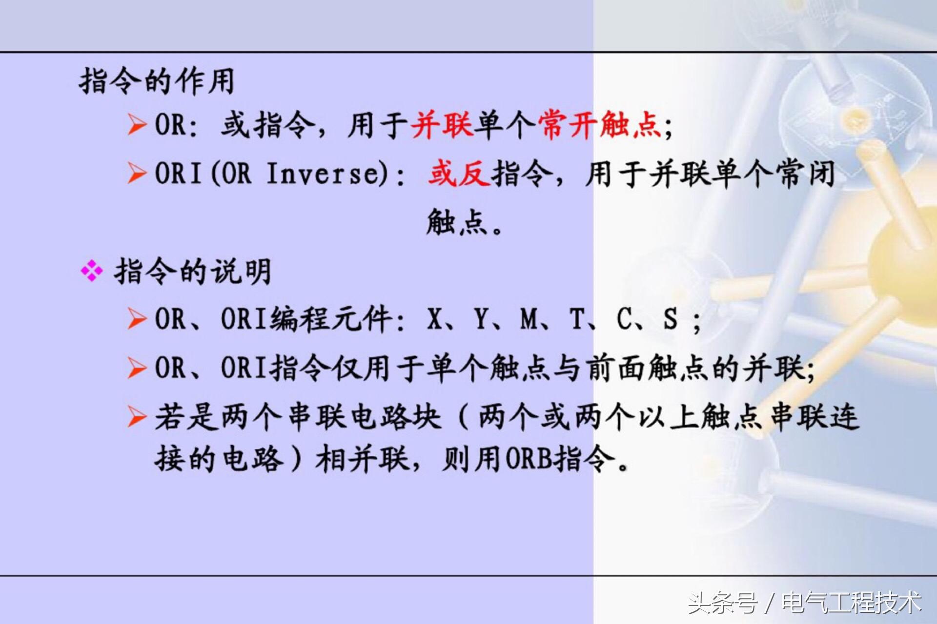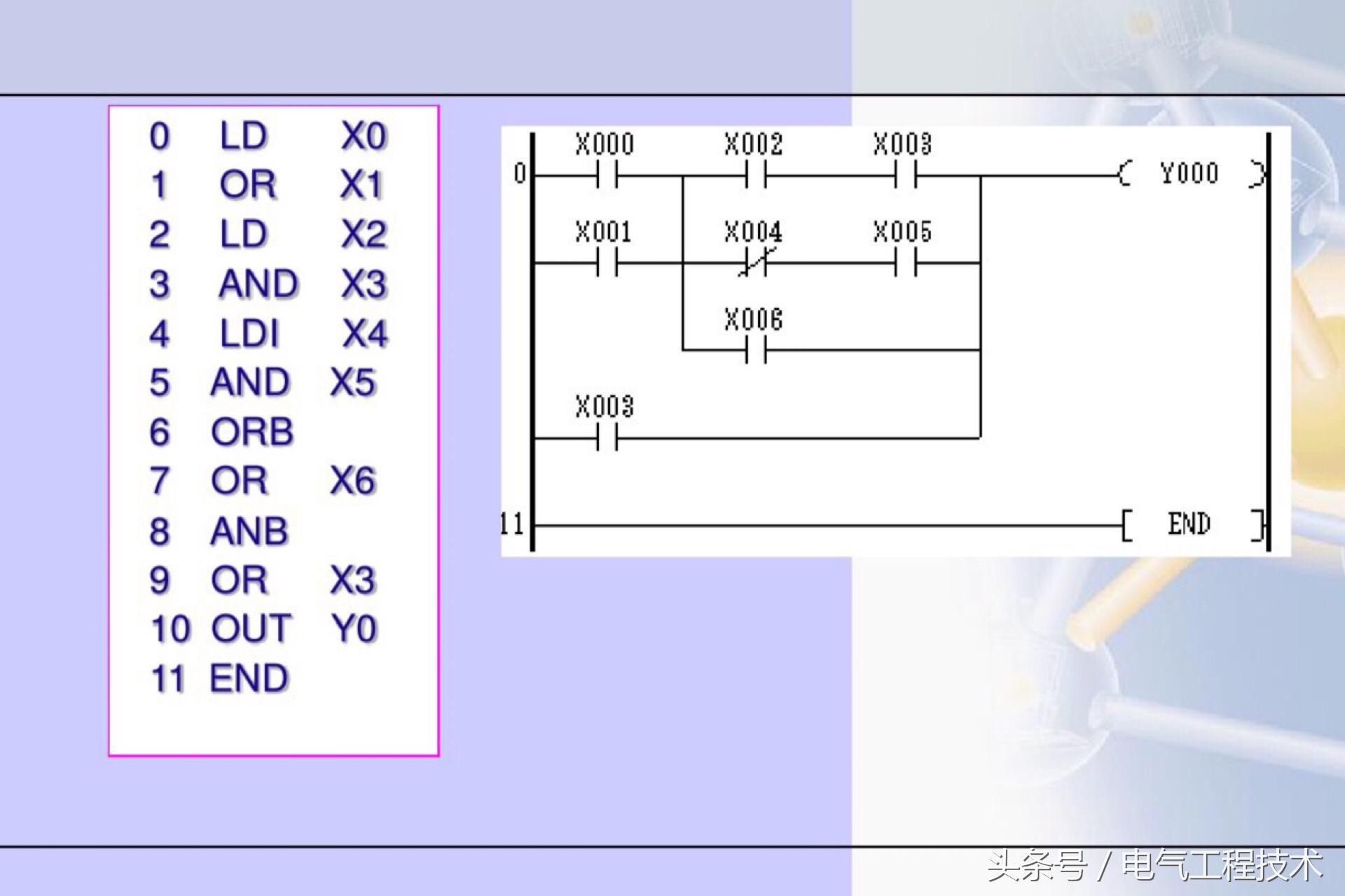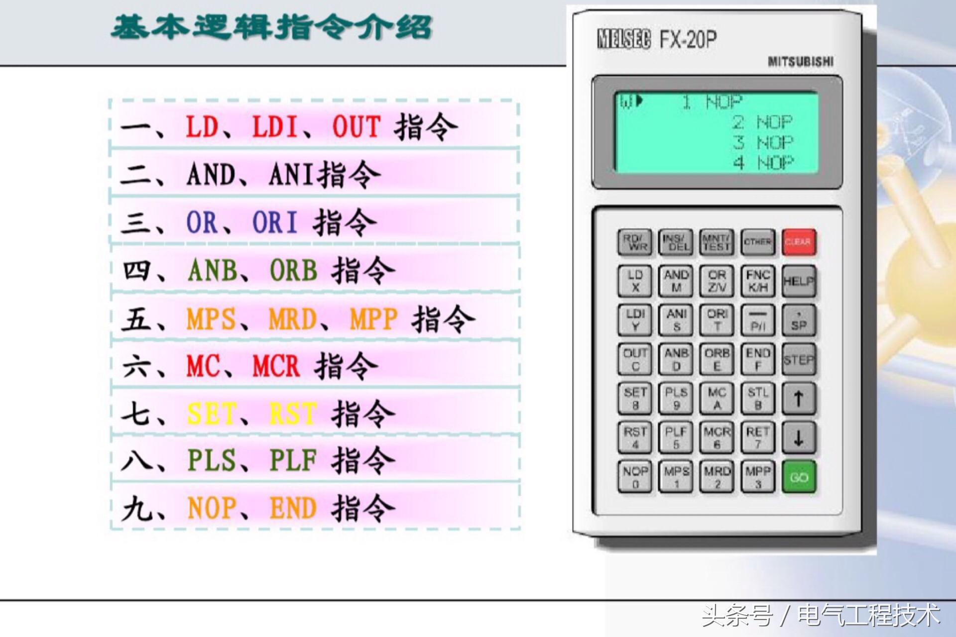 PLC控制广泛的应用在了电气自动化中,工业自动化和科技的发展中,正在一步步替代继电器和接触器的控制,在很多工况复杂,电路准确度要求比较高的场合基本都用PLC自动化控制了,自然的,越来越多的电工师傅也需要跟上工业科技的发展来学习PLC了,很多刚入门学习PLC电工师傅经常都会问:有没有什么PLC入门学习的捷径?怎么样快速入门学PLC?PLC编程很难吗?怎么样才能学会编程?PLC编程的入门知识有哪些?其实电工老师傅都知道,要想学会PLC编程,必须要懂得PLC的编程语言,也就是逻辑指令,熟练的掌握了PLC的编程指令,也算是简单入门了,今天我们就重点来看看:PLC常用的20个编程指令: