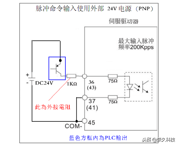 伺服脉冲口的接法有很多种,但是万法不变其中,目的都是使我们伺服驱动器的光耦能够正确的开通、关断。我们需要做的是,根据上位机提供的信号的类型、电位、方向,来确定适合的接线方法及匹配电阻,从而来实现光耦可靠的开通、关断。
