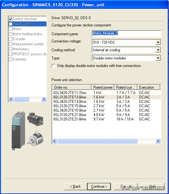 配置MotorModule,由于之前已有Drive-CLIQ将配置读上来,直接Continue