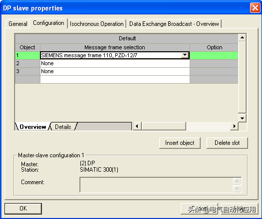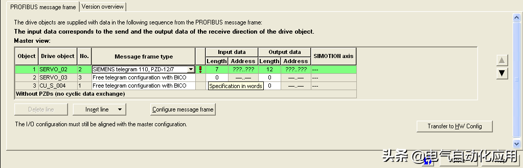 选择通讯报文,对于基本定位的报文选择SIEMENS telegram110,PZD-12/7