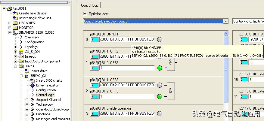 P840 ON/OFF1相对应的是r2090 bit0,即PZD1的bit0