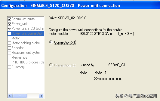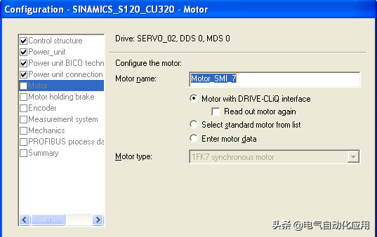 配置电机,直接由Connection X1通过DriveCLIQ读出电机信息