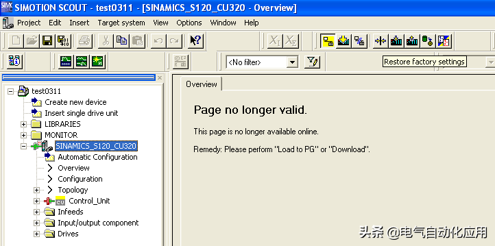 若是新的CF卡可选择自动配置Automatic Configuration,通过DRIVE-CLIQ口将S120硬件配置装载至PG电脑。
