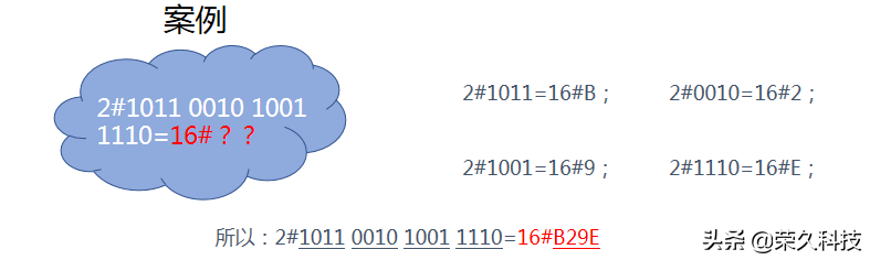 方法:将二进制数从最低位开始( 从右到左 ),以4位二进制数为一组进行分组,最左边不足4位的补零。然后对每组分别运用“8421”法则快速运算。