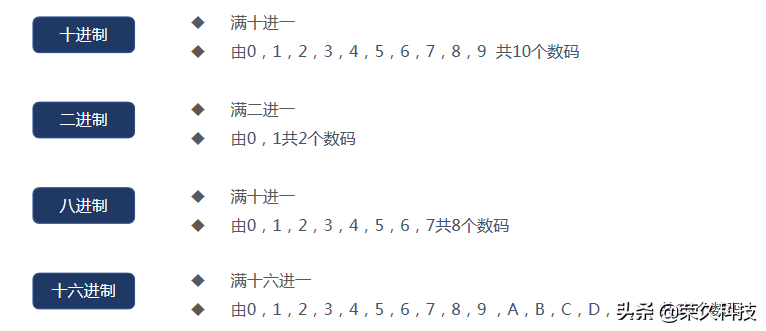 当然,人们输入计算机的十进制被转换成二进制进行计算,计算后的结果又由二进制转换成十进制,这都由操作系统自动完成,并不需要人们手工去做。人们通常采用的数制有十进制二进制、八进制和十六进制。