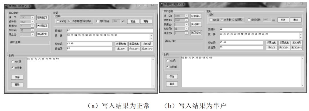 在主界面选择“开始检测”进入到子界面2,点击“启动负载”,按钮状态变为“启动中”,如图15(a)所示;调试助手发送状态为查询指令,得到的结果如图15(b)所示,可见目标状态位由0置1,监测系统可根据此标志位开始下一步串户检测工作。