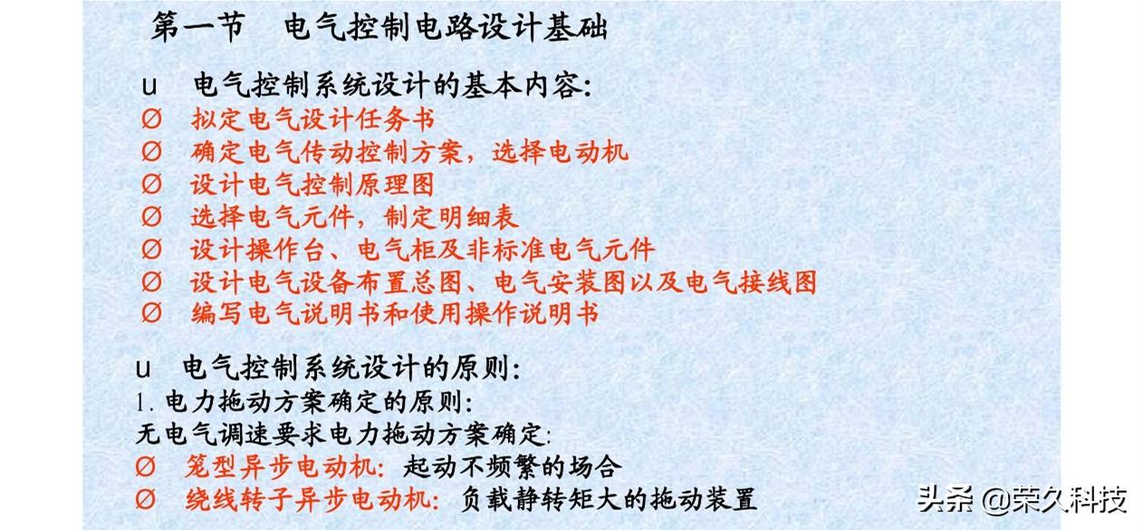 主要介绍了电气控制系统设计的基本内容、原则和方法。电气元器件的选择以及系统的保护环节。通过设计CW163卧式车床来说明电气控制电路的设计过程,来介绍了电气设计的主要内容,计算机辅助设计通用CAD绘图的常用方法及常用指令,电气设计CAD及软件。