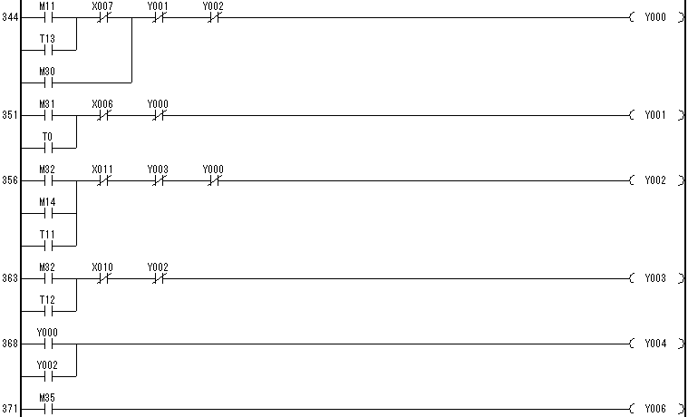当X0=0,X1=1时,则M2=1;表示2号泵变频运行控制,输出为M32,1号泵工频运行,输出为M32。