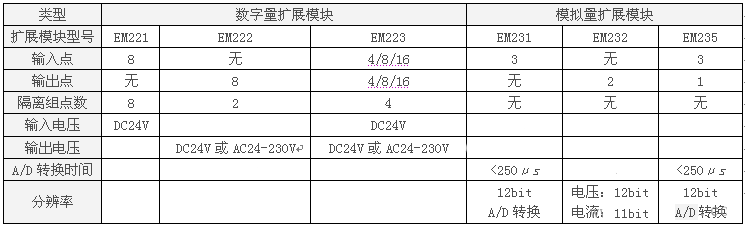 S7-200系列PLC目前提供如下扩展模块: