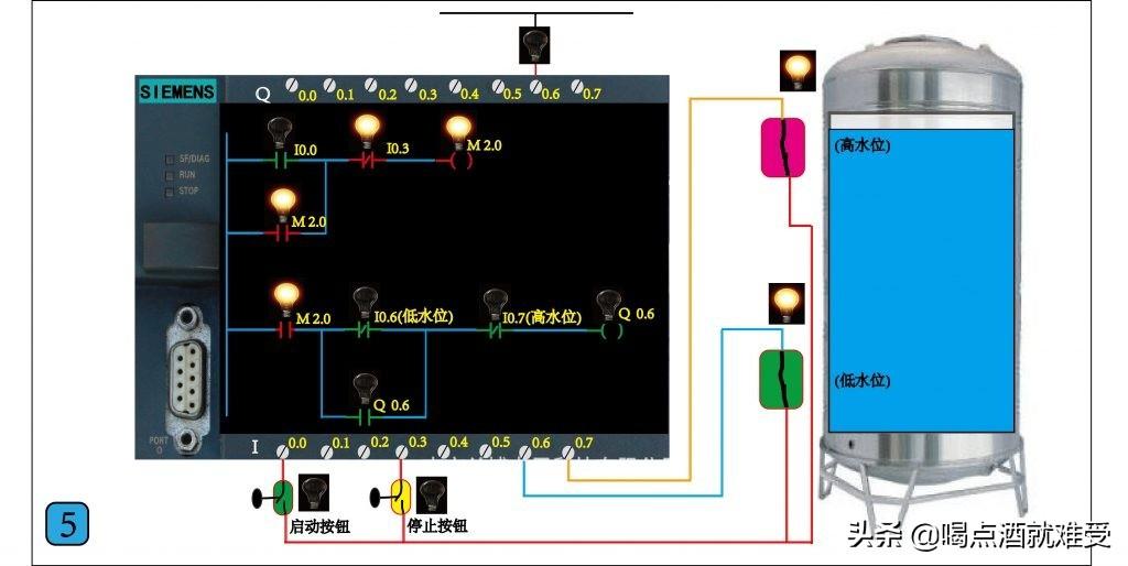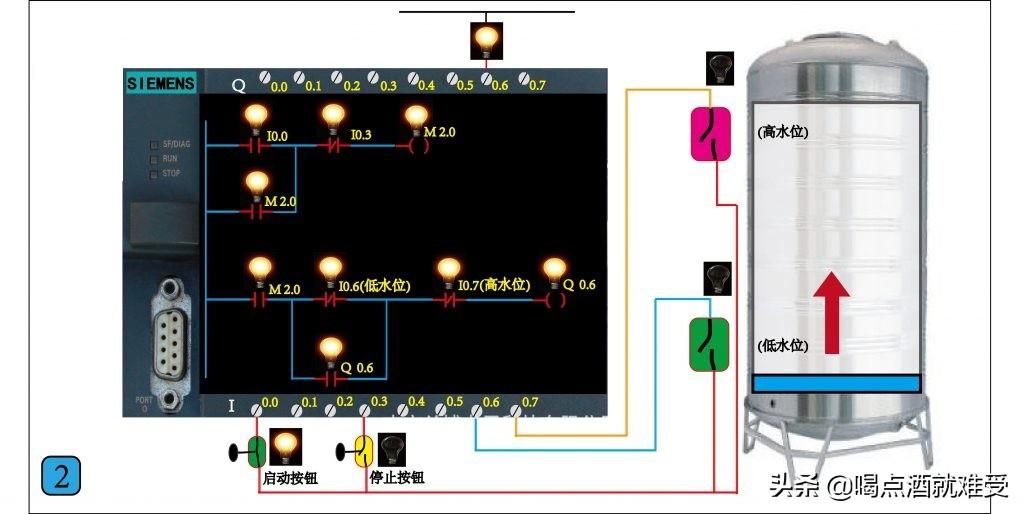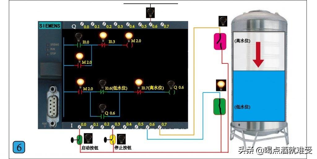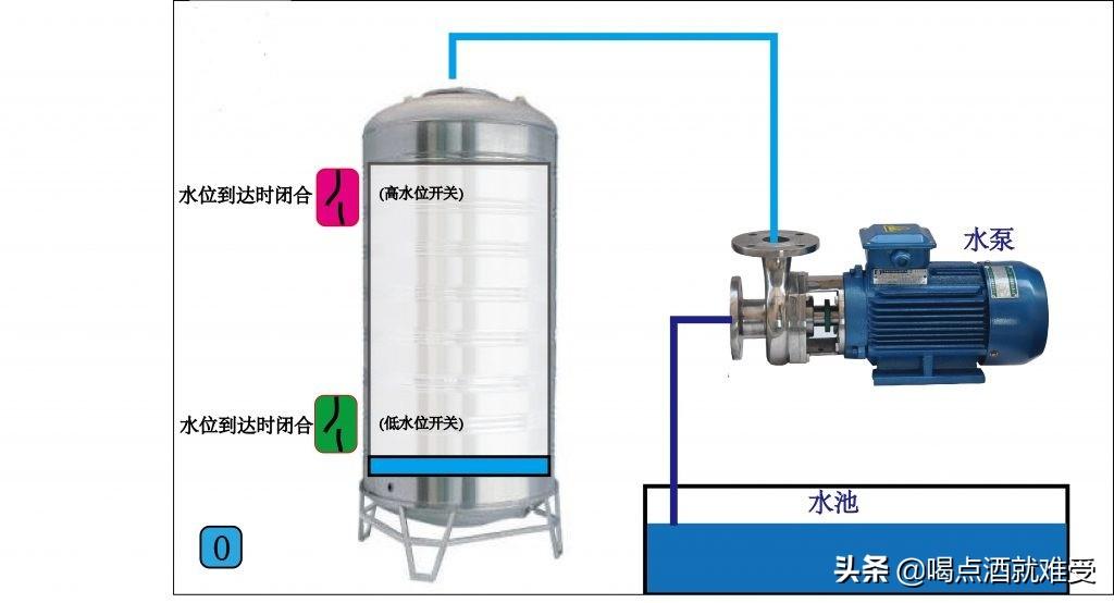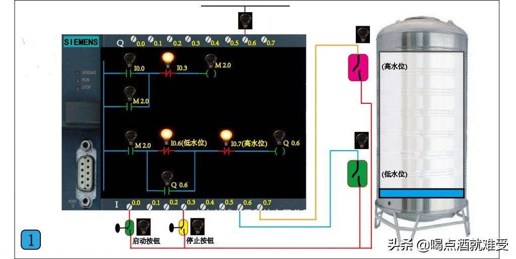 这一节讲如何用西门子S7-200 PLC控制水泵自动补水,要实现的功能是,按下启动按钮水泵启动开始补水,当水位到达高位时水泵自动停止,当水位下降到低水位时水泵自动启动补水。这是一个比较经典并且非常实用的控制系统,大家通过这节的学习,既可以掌握西门子PLC开关量的编程方法,又能学会一个工业控制领域经常用到的控制电路,在以后实际工作中如果你遇到类似的控制可以直接拿来使用,在文章的最后我会附上这个控制的实际程序和本节高清图片的下载方式 ,有需要的可以自己下载,通过仿真软件自己慢慢研究。