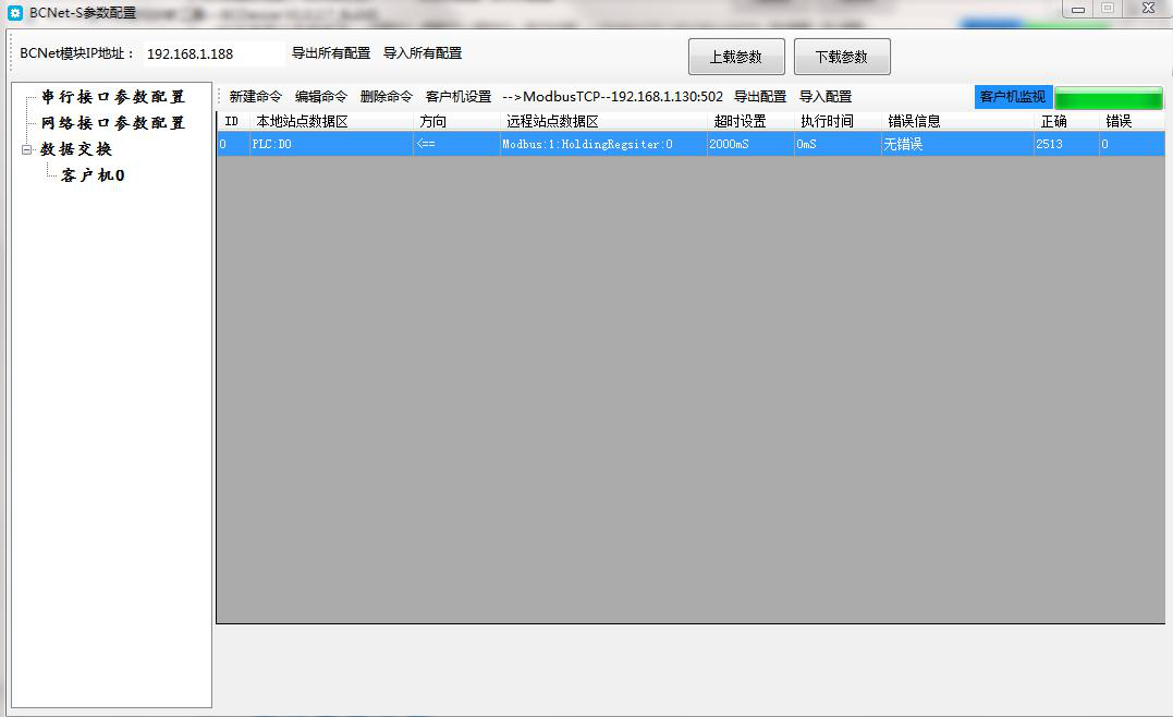 点击客户机监视按钮,【错误信息】为无错误,且【正确】有数据跳动,说明通信成功。