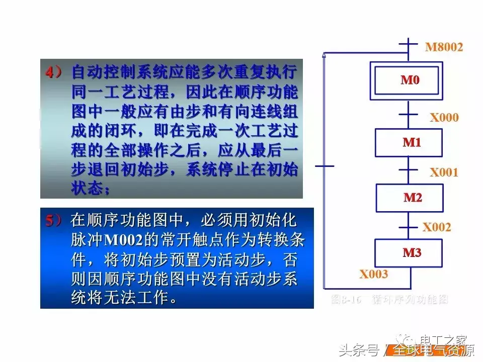 3)顺序功能图中的初始步一般对应于系统等待起动的初始状态,这一步可能没有输出,只是做好预备状态;