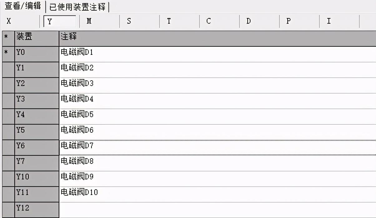 1、装置注释表及其使用情况:可设置X,Y,M,D,S等等寄存器的注释;也可以查看哪些寄存器已被使用。如下图所示: