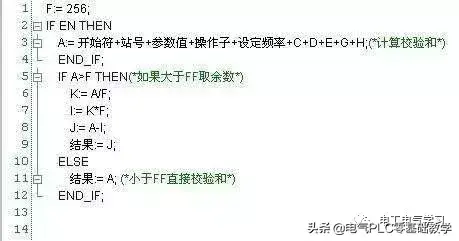 结构化文本编程语言采用计算机的描述方式来描述系统中各种变量之间的各种运算关系,完成所需的功能或操作。大多数PLC制造商采用的结构化文本编程语言与BASIC语言、PASCAL语言或C语言等高级语言相类似,但为了应用方便,在语句的表达方法及语句的种类等方面都进行了简化。