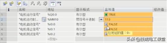 监控表主要由名称、地址、显示格式、监视值和修改值 这几个部分组成。我们需要对变量进行监控的时候,就将需要监控的变量添加到监控表中,然后点击“全部监视”按钮图标就可以对变量的当前值进行监控了。