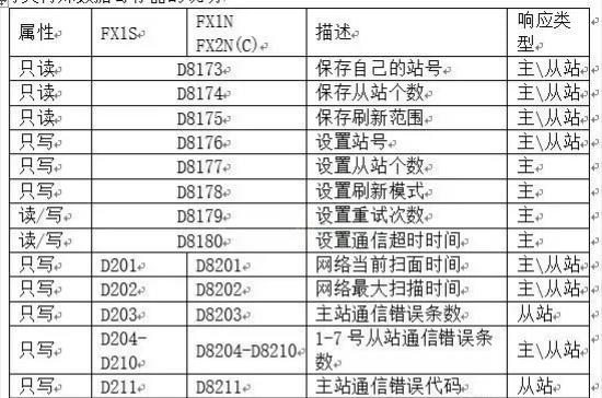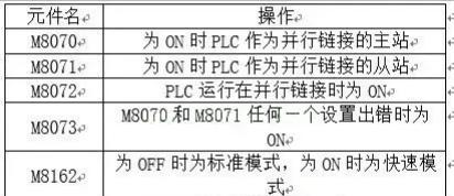 并行链接的特殊辅助继电器及特殊数据寄存器表: