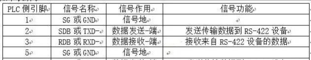 RS422接口是一种计算机、PLC控制系统中常见的标准串行接口,称为“平衡电压数字接口”。接口一般使用9芯连接器,使用的信号名称、代号、引脚的意义如下表所示: