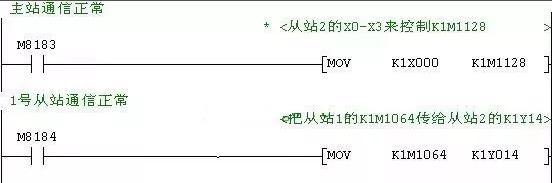 2. 1号从站的X0-X3来控制2号从站的Y14-Y17