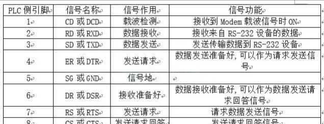 RS232接口是一种计算机、PLC控制系统中最为常见的标准串行接口,接口一般使用9芯或25芯连接器,使用的信号名称、代号、引脚的意义如下表所示:
