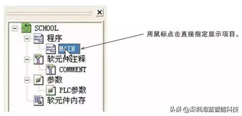 梯形图编程窗口和参数设置画面等的“树形”显示。