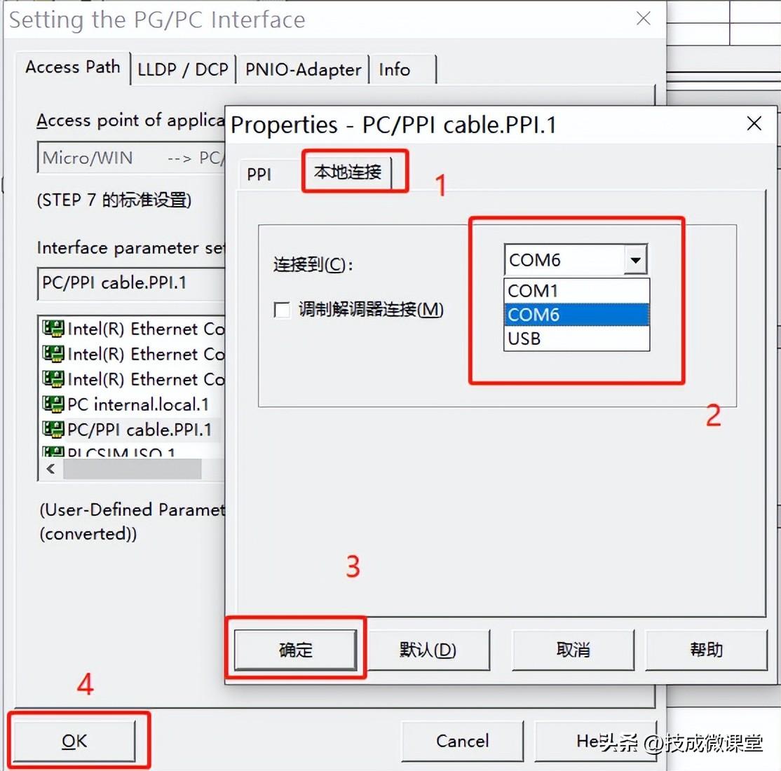 注意: 此操作是西门子PC ADAPTER USB通用线&艾莫讯PC ADAPTER USB通用线的操作设置,艾莫讯通讯线请参照图6,西门子原装通讯线请参照图7