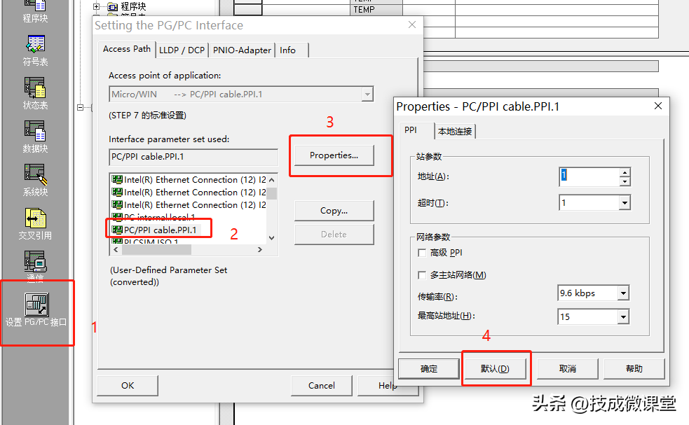 注意: 如果设置PCPG接口中已经有Micro/WIN访问点,则可以跳过这个步骤。