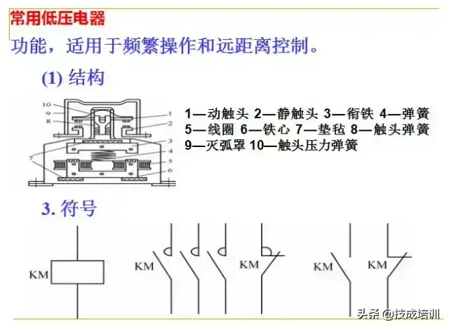 接触器是一种用于接通和断开(交、直流)负荷电流的电磁式自动切换电器,主要用于控制电动机、电焊机、电容器组等大容量设备,具有低压释放的保护。