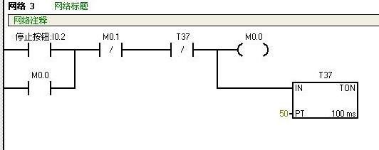 题意2要求按停止按钮5秒后才能改变电机方向,所以这里需设置一个标志位,这里用M0.0。